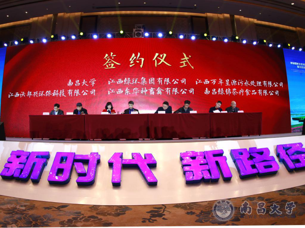此次推介会我校与江西赣皖环保科技有限公司、江西省新远健药业有限公司、江西融汇环保技术有限公司、南昌市山江湖湿地景观建设有限公司、江西绿环集团、江西万年星源污水处理有限公司、江西东华种畜禽有限公司、南昌绿锦茶疗食品有限公司、抚州市东乡区区政府分别在环境保护与污染治理技术、生态修复技术、绿色产业发展技术等方面展开签约,签约金额近4亿元人民币?br />